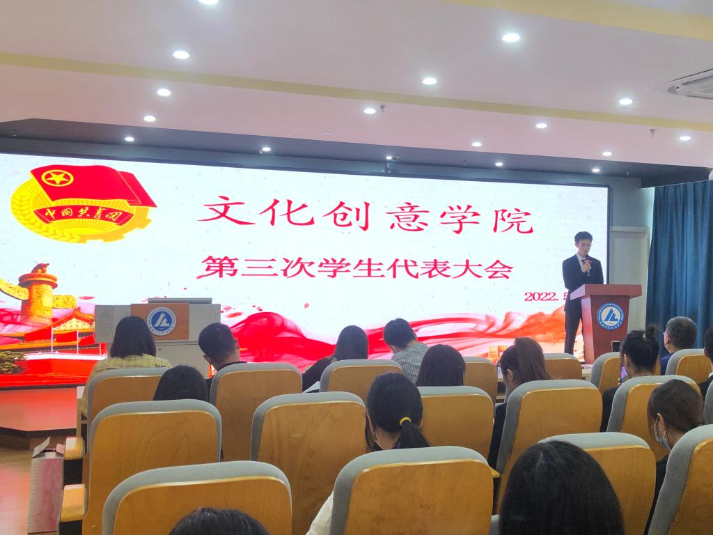 5月21日中午,文化创意学院第三次学生代表大会在导游实训室举行。文化创意学院党总支书记张克出席会议,团总支书记刘凯和青年教师代表,以及64名学生代表参加会议。