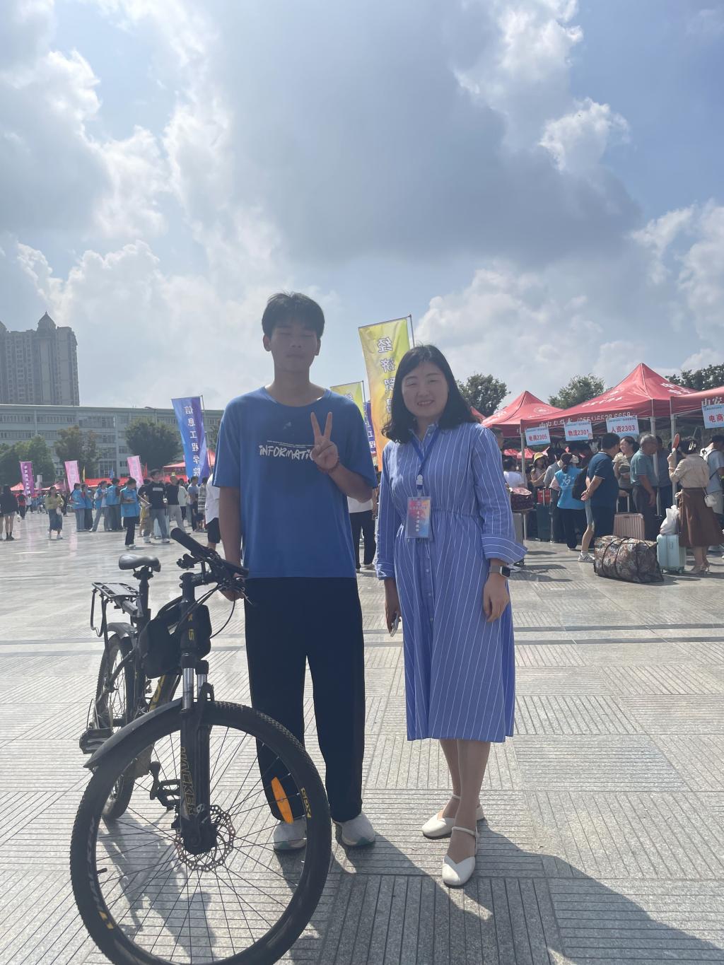 9月16日,“男生骑行2160公里抵达安财院报到”的话题引起了师生及家长们的广泛关注,毕业于亳州市利辛高级中学的江飞同学,今年被beat365中文官方网站文化创意学院旅游管理专业录取。6月17日他靠自己暑假打工攒钱买了一辆自行车,从家乡亳州出发,穿越了河南、四川、西藏、江苏、安徽5省骑行2160公里抵达beat365中文官方网站报到,完成了一场圆梦之旅。