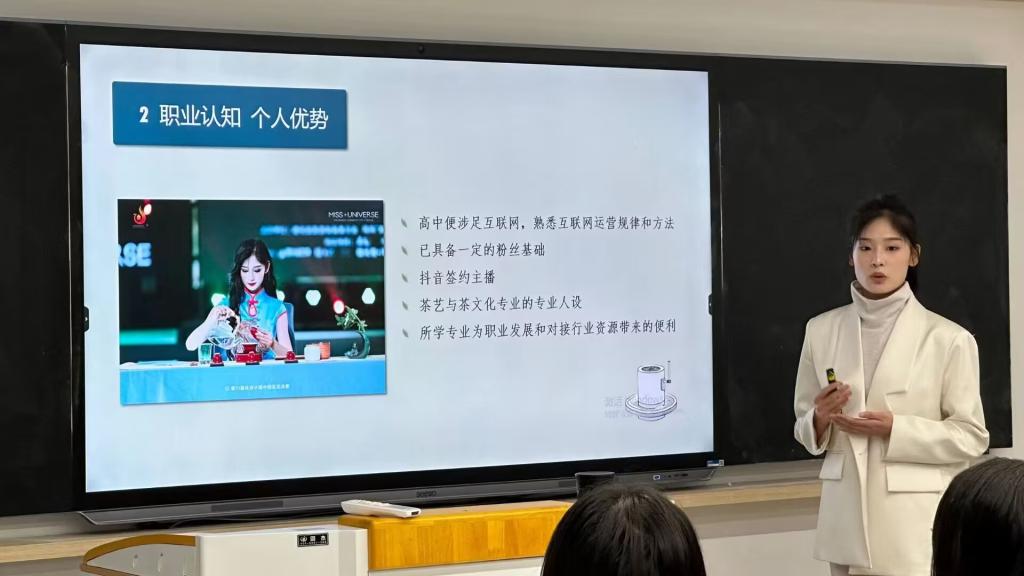 16位参赛选手通过抽签的方式先后上台作出精彩的汇报,内容紧紧围绕主题,各有特色,比赛现场气氛热烈。选手们从自我认知、职业环境分析、职业目标确定、评估与调整几个方面尽情展示了自己的职业生涯规划。候场选手以及工作人员都在认真聆听,仔细思考,充分展现了当代学子朝气蓬勃的精神风貌和锐意进取的新形象。其中,高晨璐同学从多个角度阐述了自己成为一名首席室内设计师的目标、方法和决策,赢得台下的阵阵掌声。曹欣悦同学从竞选环球小姐的经历出发,希望成为一名互联网营销师,借助自身的力量传播茶文化,获得了评委老师的一致认可。经过激烈的竞争,最终高晨璐同学获得一等奖,曹欣悦和许家珲同学获得二等奖,秦新旗、王婷婷和杨玉莹同学获得三等奖。