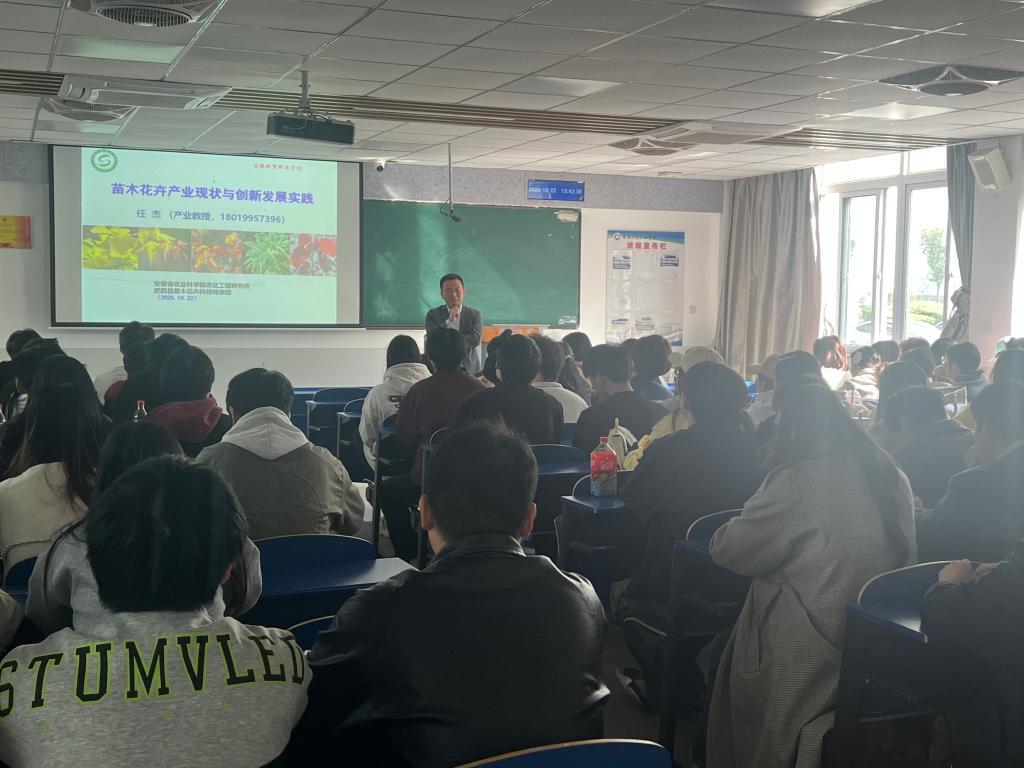 2025年10月22日下午,我校产业教授任杰博士,应文化创意学院邀请,来我校开展“苗木花卉产业现状与创新发展实践”专题讲座。文化创意学院园林技术专业骨干教师、24级园林技术专业学生参加了此次讲座。