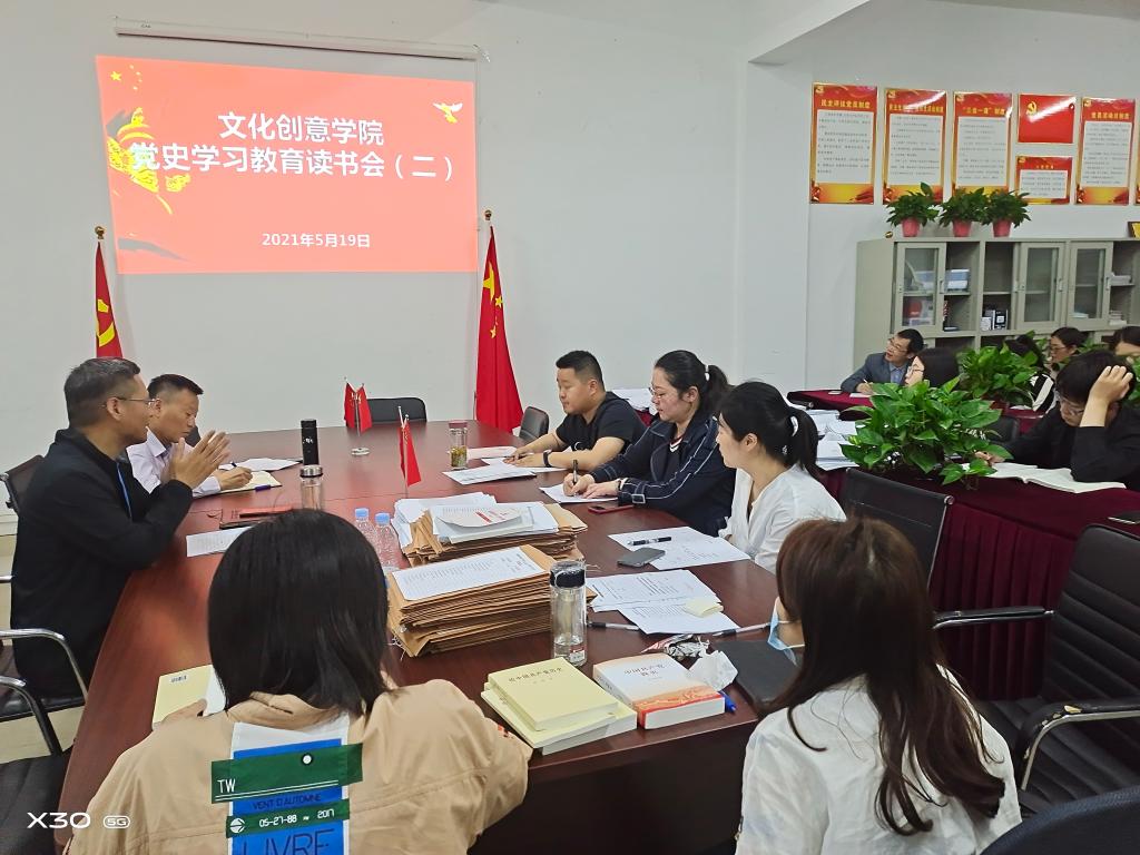 知往鉴今,以启未来。为庆祝我党百年华诞,文化创意学院继续扎实推进党史学习教育,夯实学习成果。5月19日下午,文化创意学院开展党史学习教育“读书会”(二)活动,本次活动由文化创意学院党总支书记张克主持,文化创意学院院长郭湘如及全体教职工参会。