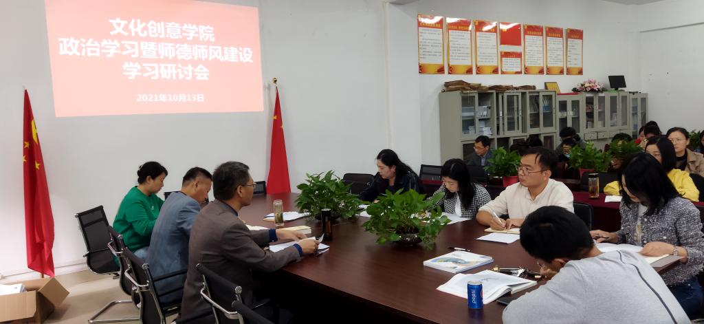 10月13日下午,文化创意学院召开政治学习暨师德师风建设学习研讨会。此次会议由党总支书记张克主持,院长郭湘如、副院长高静及全体教师参会。