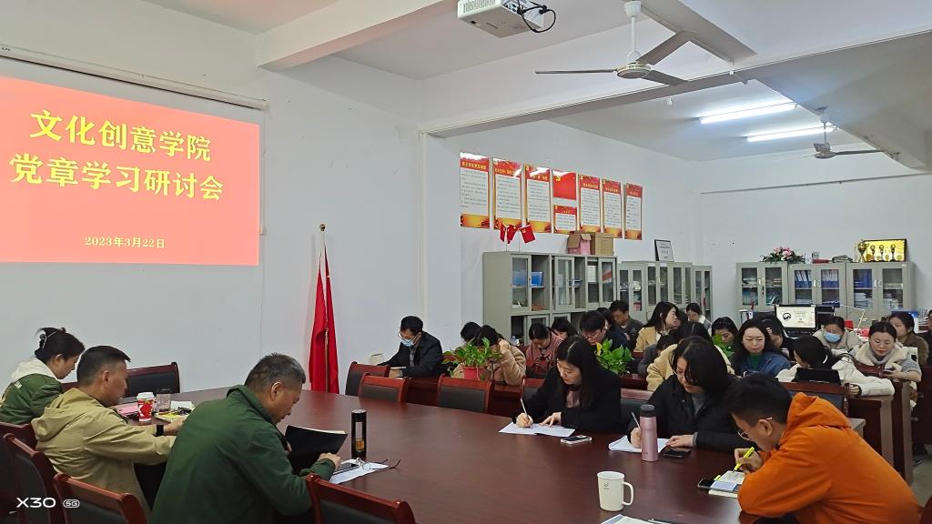 为不断深入学习宣传贯彻党的二十大精神和新《中国共产党章程》精神,3月22日下午,文化创意学院开展《中国共产党章程》学习交流主题党日活动。会议由党总支书记张克主持,文化创意学院全体党员教师参加学习研讨。