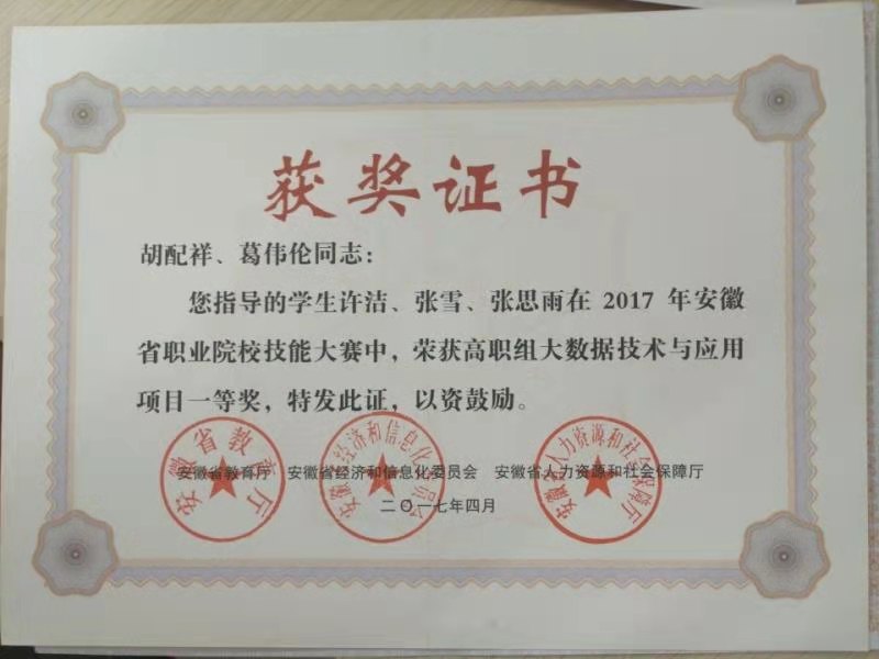 图1 2019年安徽省大数据与人工智能应用竞赛一等奖