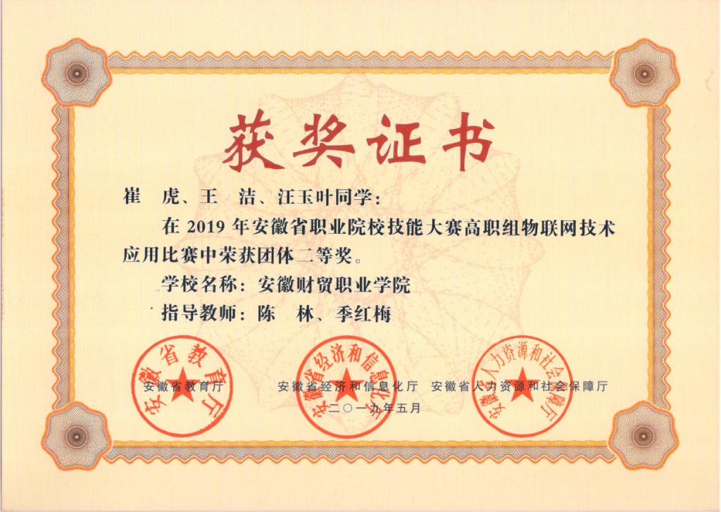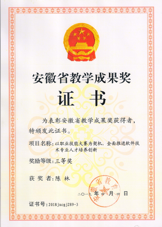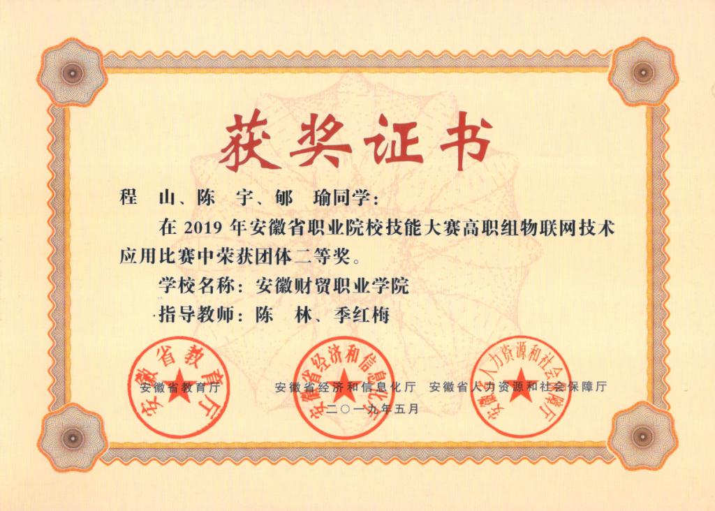 图4 学生获安徽省职业院校技能大赛二等奖
