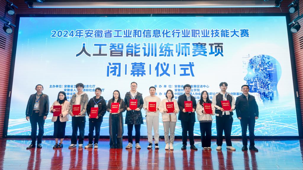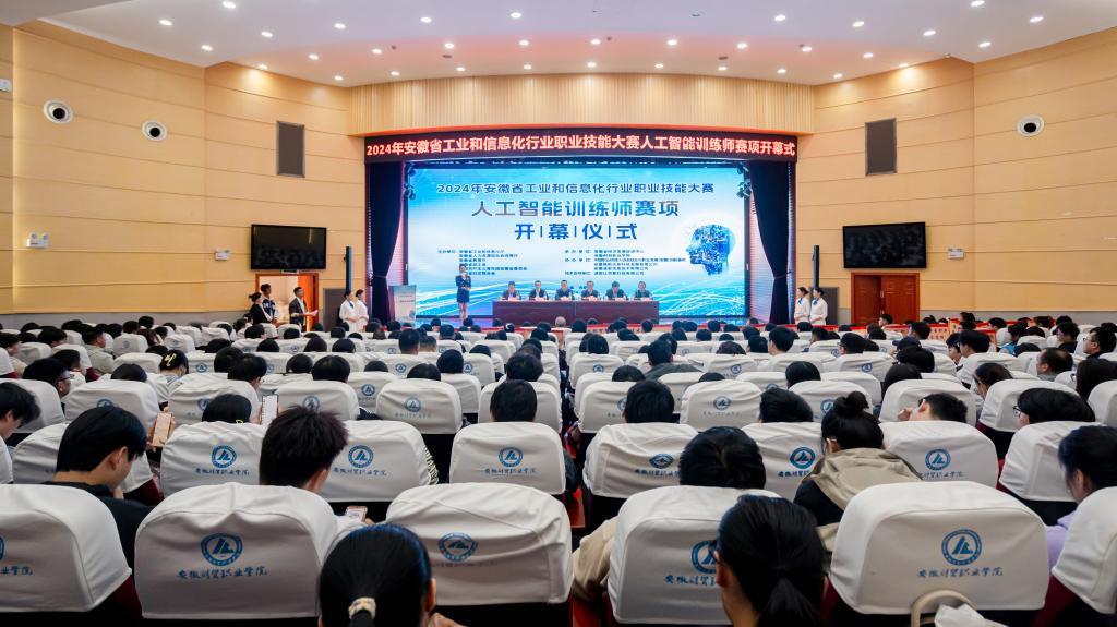 11月8日,2024年全省工业和信息化行业职业技能大赛人工智能训练师赛项在我校拉开帷幕。2024年全省工业和信息化行业职业技能大赛组委会副主任、省工业和信息化厅人事教育处(人才工作处)处长韩涛,省人力资源和社会保障厅职业能力建设处四级调研员王军军,2024年全省工业和信息化行业职业技能大赛组委会副主任、省工业和信息化厅经济发展促进中心主任徐本明,中国职业经理人协会就业与职业发展(安徽)创新基地工作委员会执行主任顾云,学校党委书记张志祥,党委委员、副校长王海龙出席开幕式。