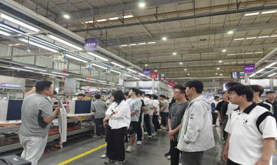 随后,同学们参观了海尔空调智能生产流水线。据工作人员介绍,整个车间恒温恒湿,从零部件的质量监控,内部电路焊接,到最后的产品包装,几乎全部实现了自动化和智能化,让同学们真切体验到了自动化流水线的智能生产流程。