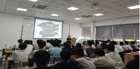 参观结束后,企业组织了一场“华东园区校园交互会”,海尔人事经理夏琴向学生介绍了合肥海尔的发展和人才需求现状,并欢迎同学来海尔实习,到海尔就职。同学们受益匪浅、反响强烈。