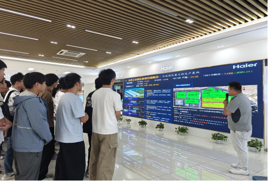 参观第一站为海尔空调卡萨帝展厅,企业工作人员详细介绍了海尔空调的发展历程、技术革新、生产运营和管理等情况,使学生们对智能制造背景下空调生产情况有了更加深刻的了解。