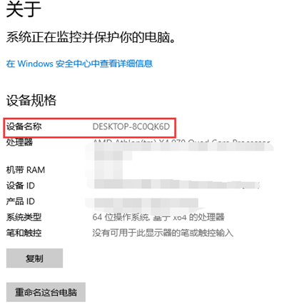 右击桌面【此电脑】选择属性,记住电脑的设备名称,如图7所示。