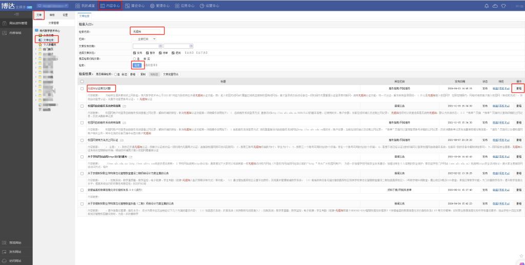 在文章检索结果页,勾选需要修改的文章,点击文章标题即可进入文章编辑页面。也点击撤稿对文章进行撤稿,如图1所示。