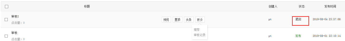 文章提交审核后只能由审核人进行操作,编辑者想要继续操作文章就需要联系审核人退回该文章后才可以继续编辑文章,如下图所示。