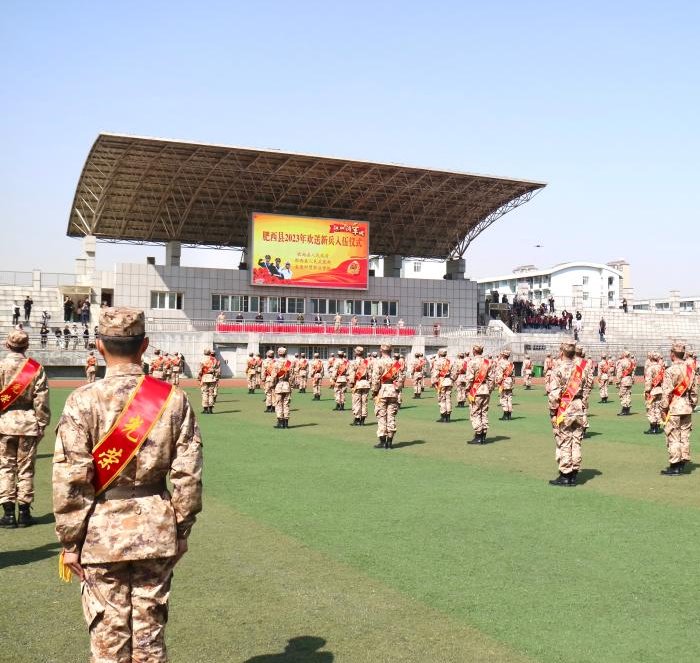 大会在雄壮的国歌声中拉开帷幕,全体新兵们身穿崭新的迷彩服,佩戴绶带和大红花,个个精神抖擞、英姿挺拔。肥西县人民武装部宣读了235名新兵批准入伍命令,出席领导为入伍新兵代表佩戴大红花,并赠送鲜花和纪念品。新兵代表龚委和新兵役前教育教练员代表孙泉分别作了发言,全体新兵进行了庄严的入伍宣誓。孙民对即将迈上军旅新征程的新兵们表示热烈祝贺,并提出了期望。要严格要求、担负使命,始终不忘初心、牢记使命,积极投身强军事业,争取早日成为一名合格的共和国战士,为祖国争光,为家乡添彩;要刻苦训练、报效祖国,始终牢记习近平主席嘱托,牢记军人职责使命,从难从严、刻苦训练,为强军梦、强国梦贡献青春力量;要多多保重、心系家乡,不忘殷切期盼,不忘养育之恩,扎根军营、建功立业、捷报频传,同时表示家乡党委政府一会大力加强拥军优属工作,解决好军人“三后”问题。