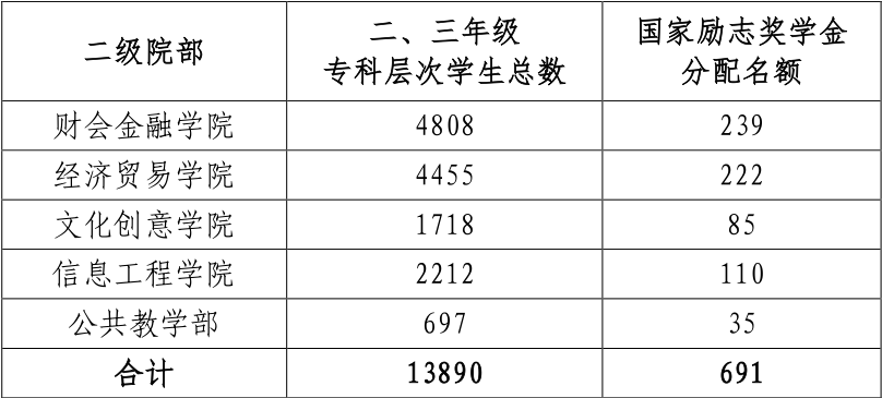 省财政厅、省教育厅分配我院国家励志奖学金名额691名。国家励志奖学金实行等额评审。