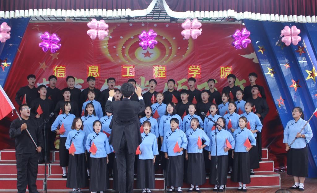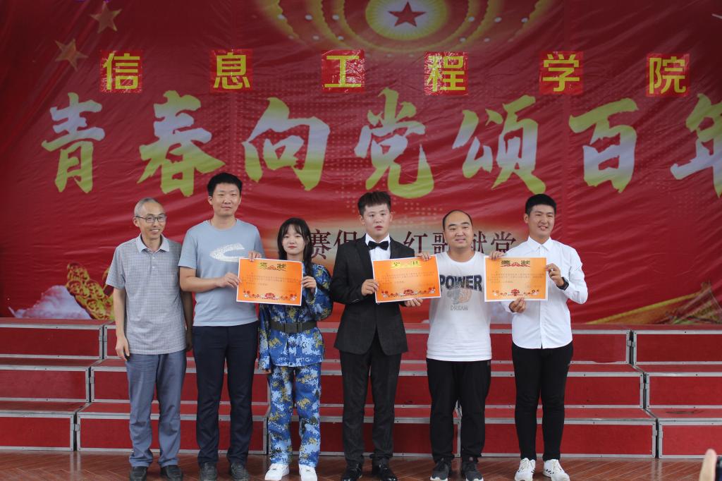 为献礼中国共产党的百岁华诞、歌颂伟大祖国的72年风雨历程。9月29日下午,信息工程学院在5103教室举办了“青春向党颂百年”新生红歌大合唱比赛。信息工程学院院长张成叔、党总支书记邓庆安、副院长姚成、党总支副书记张伟伟、办公室主任刘燕、学生秘书董小卿、教学秘书徐丹丹担任本次大合唱比赛的评委。