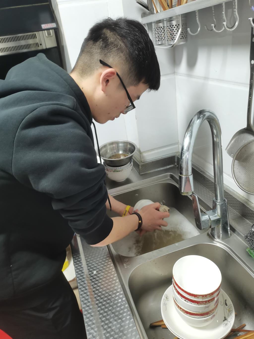 饭后,同学们拿着抹布、拖把等清洁工具,帮老人打扫家庭卫生,将阳台上需要清理的无用物品清理出去,还帮着擦灶台、清理油烟机、擦窗户、拖地等。对老人家的房屋、用电安全隐患进行全面排查,确保老人居住环境安全。