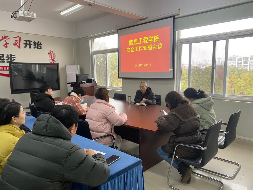 1月19日上午,信息工程学院在综合楼313召开安全工作专题会议,会议由信息工程学院党总支书记邓庆安主持,全体行政管理人员参加会议。
