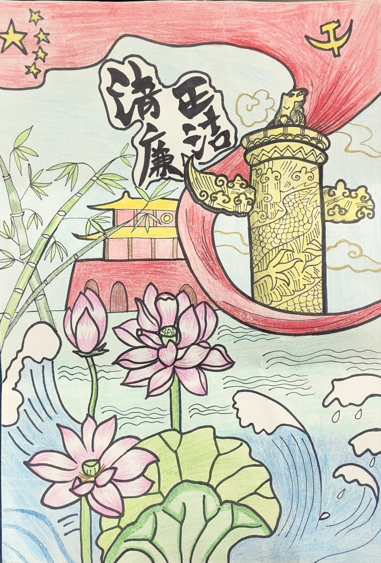 参加本次评比的有名同学,共18份作品,以清正廉明、社会主义核心价值观为主题内容,参赛形式多样,涉及书画、摄影、海报、漫画等多种形式。通过评委认真商讨和评选,计应2304班的高亚轩获得一等奖,飞控2302班的王星宇和软件2302班的周蕊获得二等奖,计应2302班的陆浩、计应2303班的章瑶和谢紫旭获得三等奖。
