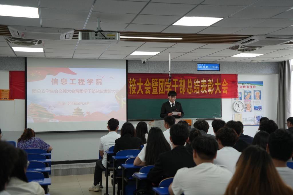 6月25日,信息工程学院召开了团总支学生会交接大会暨团学干部总结表彰大会,学院团总支书记岳吉方老师参加会议。