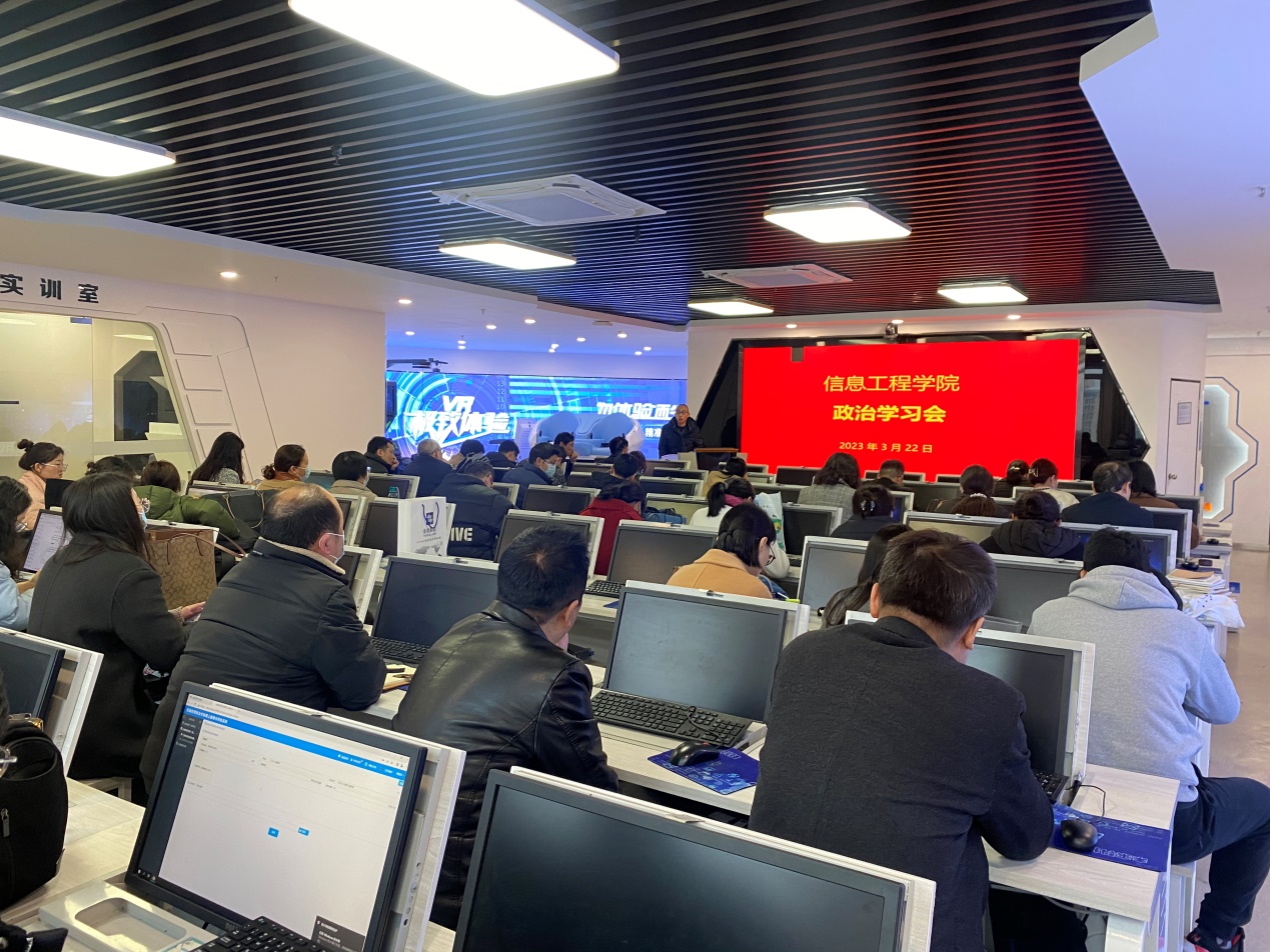 3月22日下午,信息工程学院在A803实训室开展着力推动高质量发展,学习党的二十大报告主题党课活动。本次党课由信息工程学院党总支副书记、学生党支部书记张伟伟主讲,信息工程学院全体教职工参加。