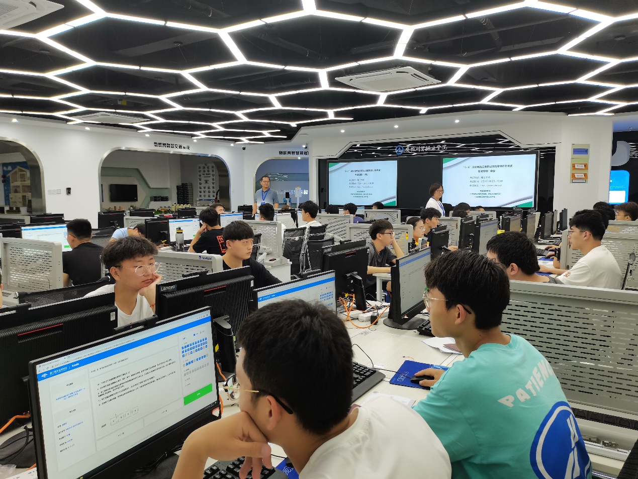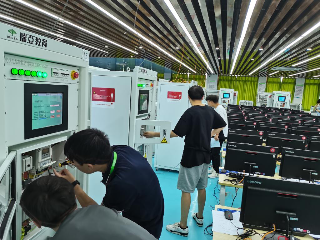 此次考试学生全部上机进行,分理论和实操两个部分进行,理论90分钟,实践考核分三组,每组13人,时长共9个小时,主要考核:光伏电站系统搭建与测试、光伏电站通讯调试、光伏电站运行值班和巡检,光伏电站故障排除等。考试合格的学生将获得由浙江瑞亚能源科技有限公司颁发的光伏电站运维职业技能等级(中级)证书。