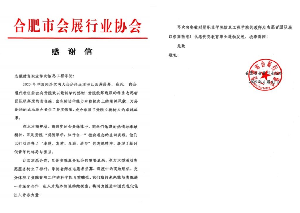 志愿者团队以高度的责任感、出色的协作能力和积极向上的精神风貌,为分论坛的成功举办提供了坚实保障,充分彰显了我院立德树人的卓越成果。受到合肥市会展行业协会的高度赞扬和评价。