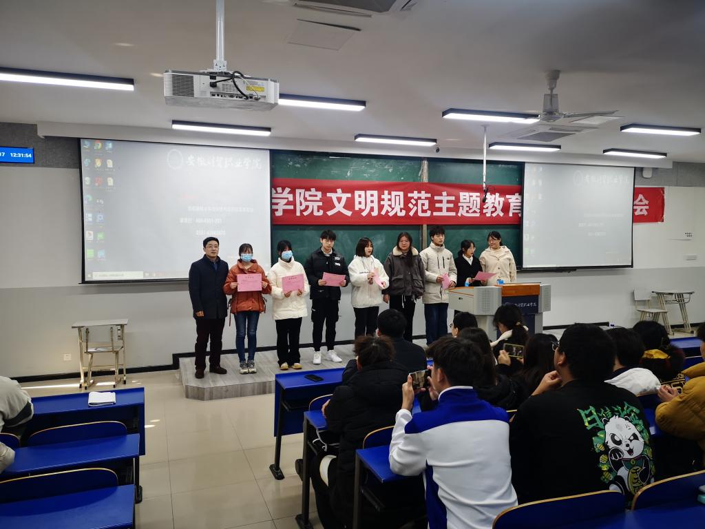 12月17日信息工程学院在6103教室举行了文明规范教育系列活动总结暨表彰大会。党总支副书记张伟伟、团总支书记梅云凤、所有专职辅导员出席了表彰大会。