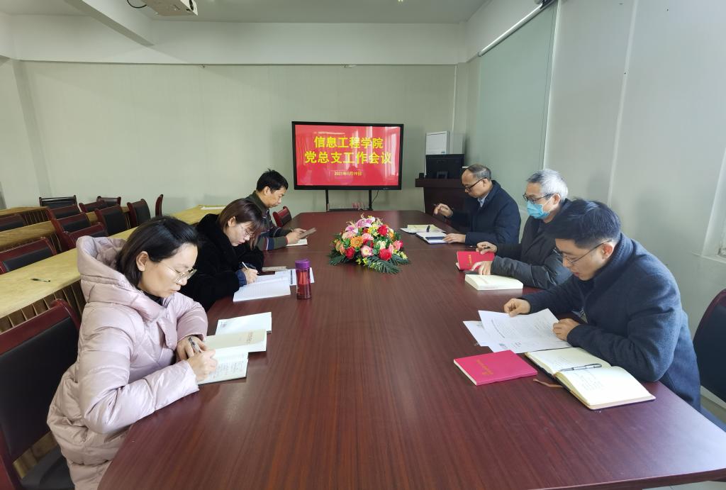 2021年1月19日上午,信息工程学院召开党总支2021年第一次工作会议,会议由学院党总支书记邓庆安主持,全体党总支委员参加会议,教师党支部书记耿家礼列席会议。