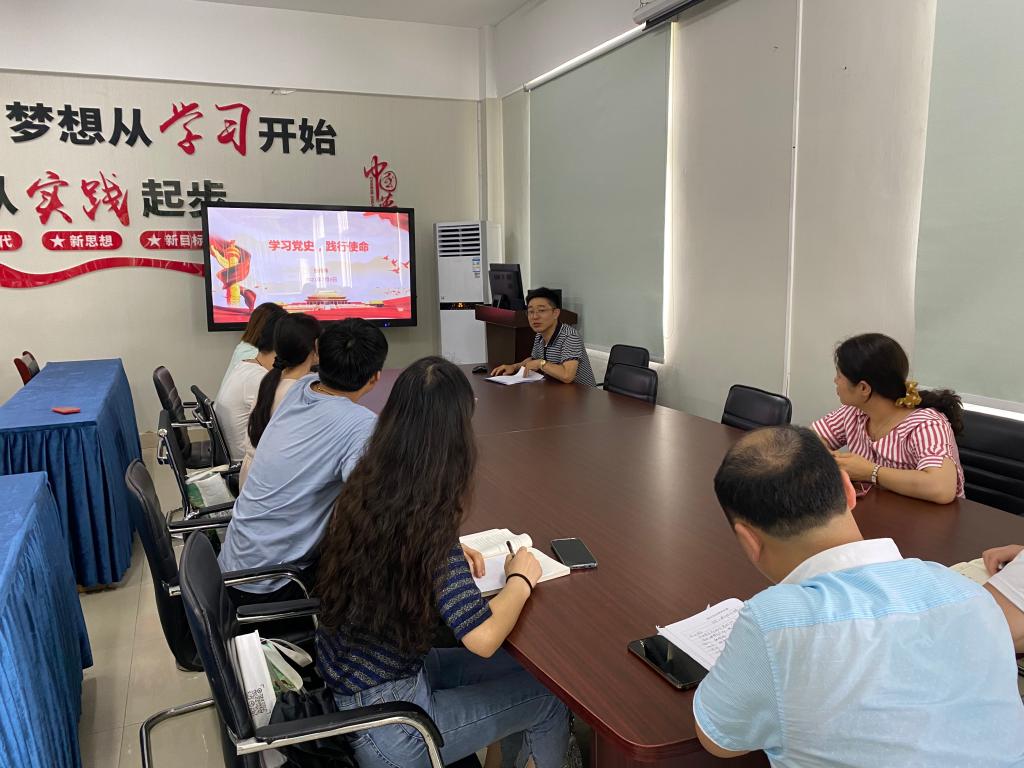 7月20日下午,信息工程学院党总支副书记张伟伟在综合楼311为我院学生党支部讲授《学习党史,践行使命》主题党课。全体学生党支部老师到场聆听。