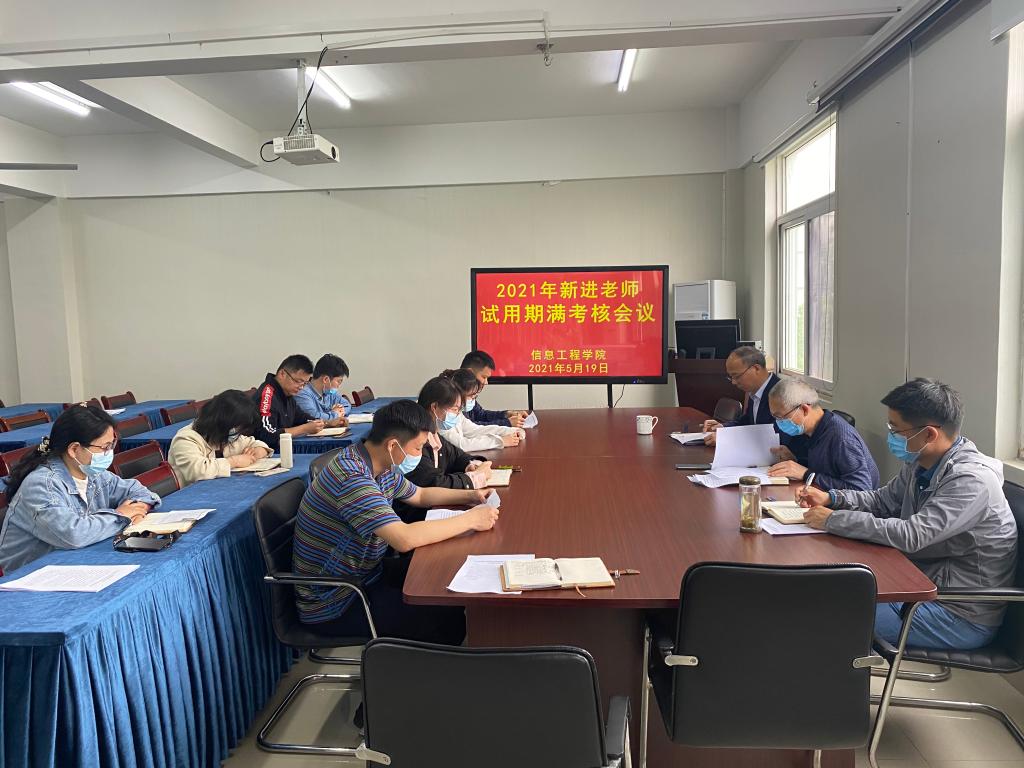 5月19日,信息工程学院召开2021年新进教师试用期满考核会议。信息工程学院院长张成叔主持会议,党总支书记邓庆安,党总支副书记张伟伟及8位2021年新进教师参加了会议。