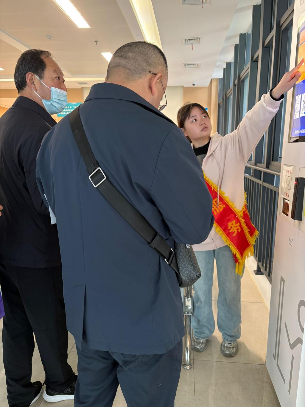 活动中,志愿者主动为患者提供自助机使用服务,帮助独自就医的中老年患者、孕妇、外地旅客等完成挂号、缴费等项目,提高了医疗流程效率,有效缓解了门诊高峰期的就诊压力。