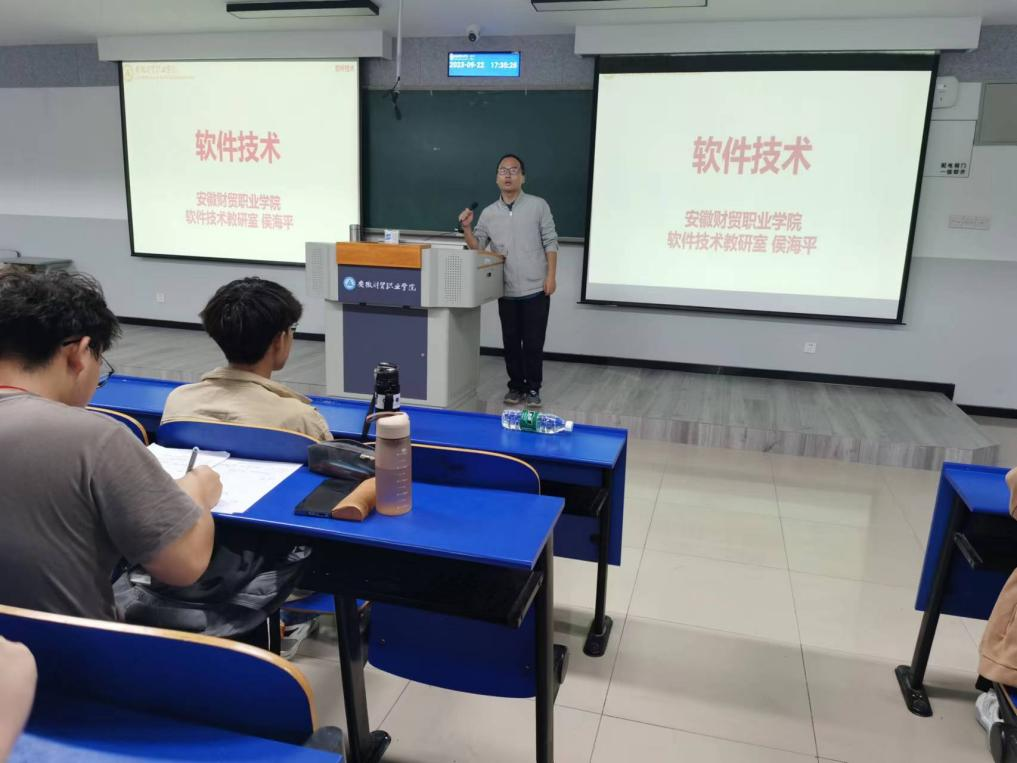 9月22日晚,为帮助2023级新生更好更快地适应大学生活,进一步了解所学专业,并对大学的学习有一个更清晰的认识和规划,软件技术教研室在6202教室开展了2023级软件技术新生专业教育活动。软件技术教研室主任侯海平老师担任主讲。