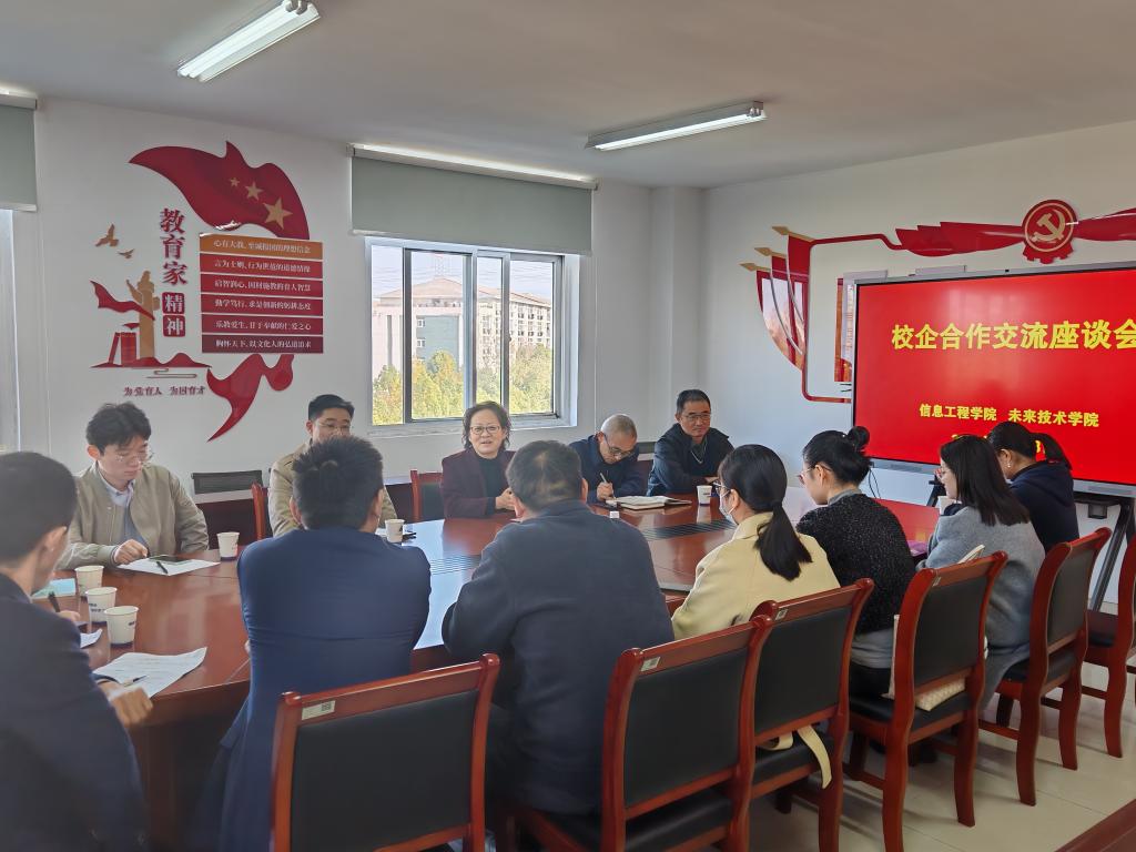 11月23日,信息工程学院和未来技术学院邀请来我校参加“校园专场招聘会”的9位企业代表,召开校企合作交流座谈会。学校纪委书记罗虹出席会议,信息工程学院和未来技术学院负责人参加座谈会。