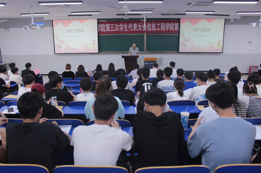 5月25日下午,信息工程学院在6103教室隆重召开第三次学生代表大会。信息工程学院党总支书记邓庆安出席大会,办公室主任刘燕、团总支书记梅云凤、学生秘书董小卿、专职辅导员岳吉方、姚德健、樊荔红、洪平、杜可可以及69名学生代表参加了会议。