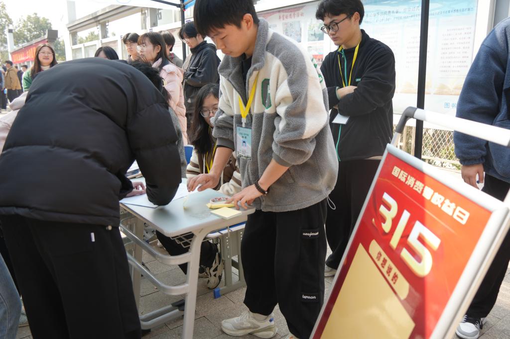 为在学校大力宣传国际消费者权益日,对大学生消费群体进行教育,提高大学生维护自身权益的意识和能力,文明消费,健康消费。3月15日,信息工程学院举办的以“智慧消费,权益在我心”为主题的活动在食堂对面拉开了帷幕。