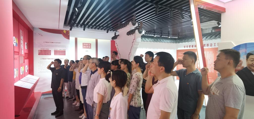 7月30日,信息工程学院党总支开展“党员干部党史学习教育日”,全体党员同志参观马克思主义学院智慧思政情境实训室,重温入党誓词,在线开展党史学习教育。