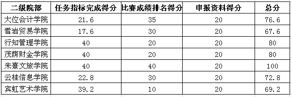 根据评审规则,经报领导同意,拟确定朱熹文旅学院、行知管理学院和茂荫财金学院获得优秀组织奖,大位会计学院、云桂信息学院、宾虹艺术学院和雪岩贸易学院获得组织奖。