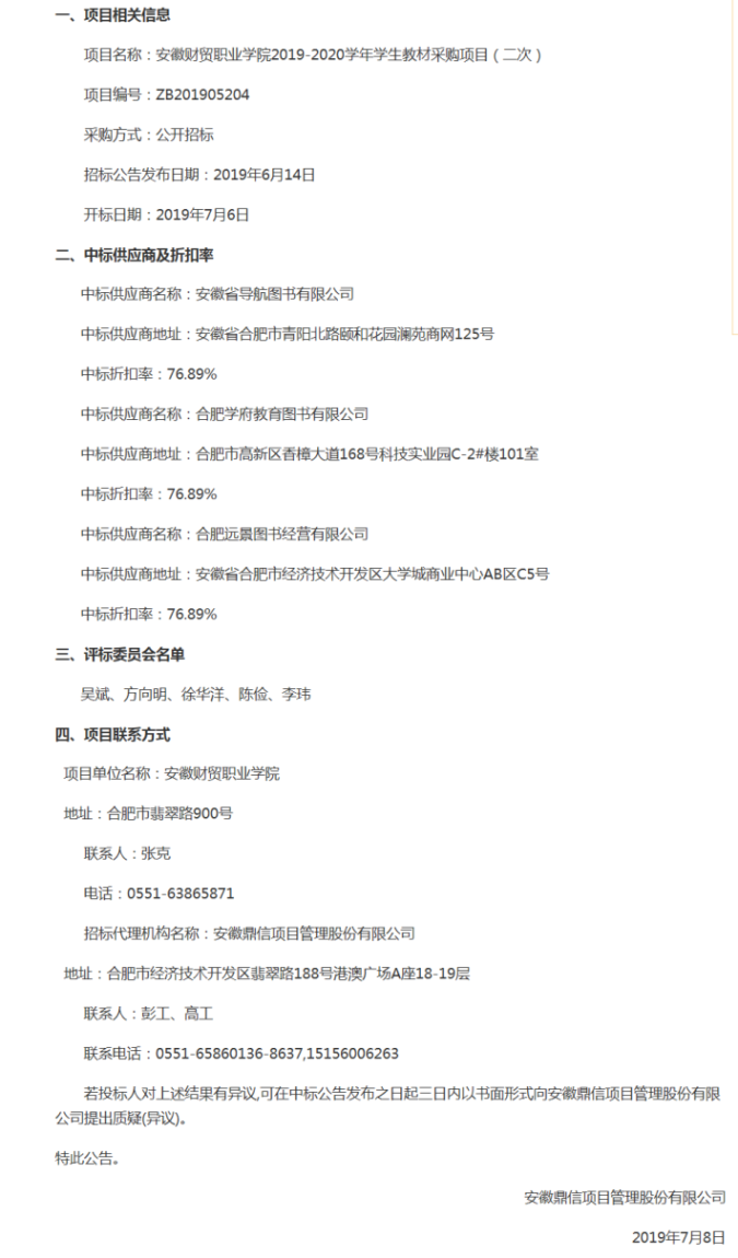 beat365中文官方网站2019-2020学年学生教材采购项目(二次)中标公告
