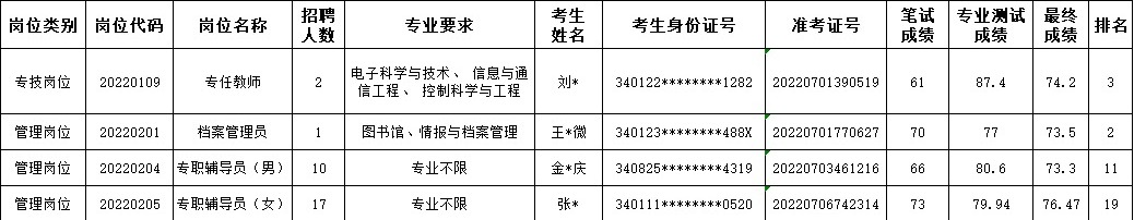 在学院2022年度编外聘用人员公开招聘资格复审阶段,因考生放弃资格复审或资格复审不合格等原因,专任教师(20220109)、档案管理员(20220201)、专职辅导员(男)(20220204)、专职辅导员(女)(20220205)等4个招聘岗位共缺额4人。