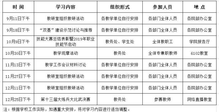 2019-2020学年度第一学期业务学习安排表