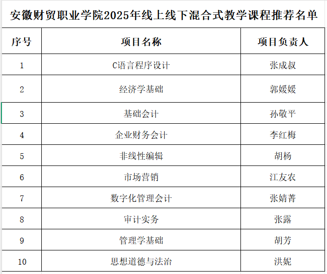 根据《关于培育与建设线上线下混合式教学课程申报工作的通知》,经个人申报、专家评审,现将学院2025年度线上线下混合式教学课程推荐名单公示如下。