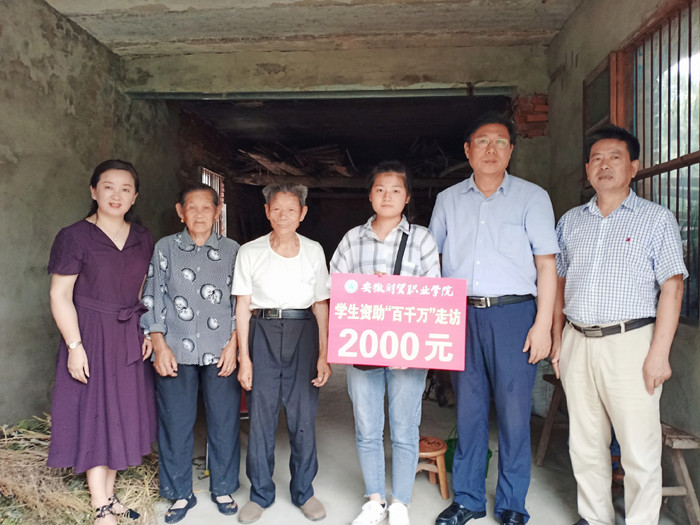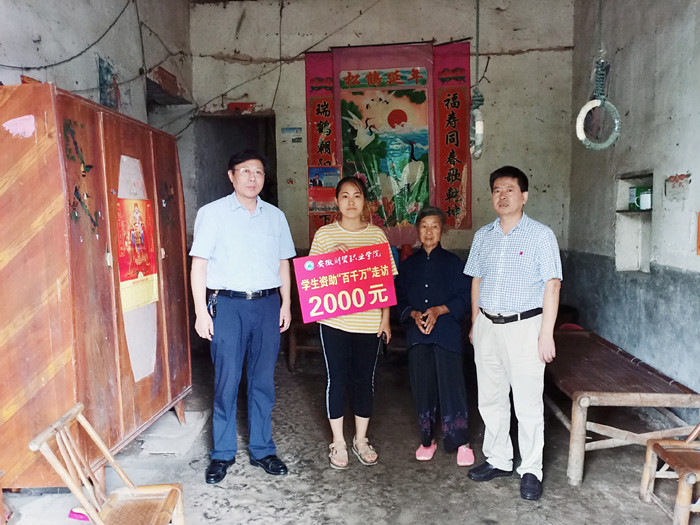 为宣传贯彻学生资助政策,全力做好教育扶贫资助工作,健全资助育人服务体系,落实打赢脱贫攻坚战的决策部署,学校对2019年暑期学生资助“百千万”走访活动作出部署,由全体校领导带队赴一些贫困县区走访慰问特困学生家庭。7月9日,副校长胡戴新率领学生资助“百千万”走访第四组成员,前往枞阳县走访慰问建档立卡和经济困难学生家庭,并送去慰问金。雪岩贸易学院党总支和朱熹文旅学院党总支负责同志随行。 走访组成员冒雨前行,深入枞阳县横埠镇中义村、金社乡枫冲村、会宫镇光裕等地对建档立卡和经济困难的学生家庭进行了走访。胡戴新一行每到一户家庭经济特困家庭,与学生及家长进行了深切交谈,详细了解他们的家庭经济情况和生活状况,询问了贫困学生暑期学习、生活和工作状况,并宣传了国家、学校等各项资助帮扶政策,征询了学生及家长对学院资助工作的意见和建议。当得知一位学生很小就失去父亲和母亲相依为命,她依然能刻苦学习,利用暑期打工赚钱时,胡戴新对受访学生面对逆境能够自立自强、阳光上进、勤奋好学的精神给予了充分的肯定和赞扬,鼓励她克服困难、迎难而上、最终战胜困难,要始终相信,知识改变命运,读书创造未来。