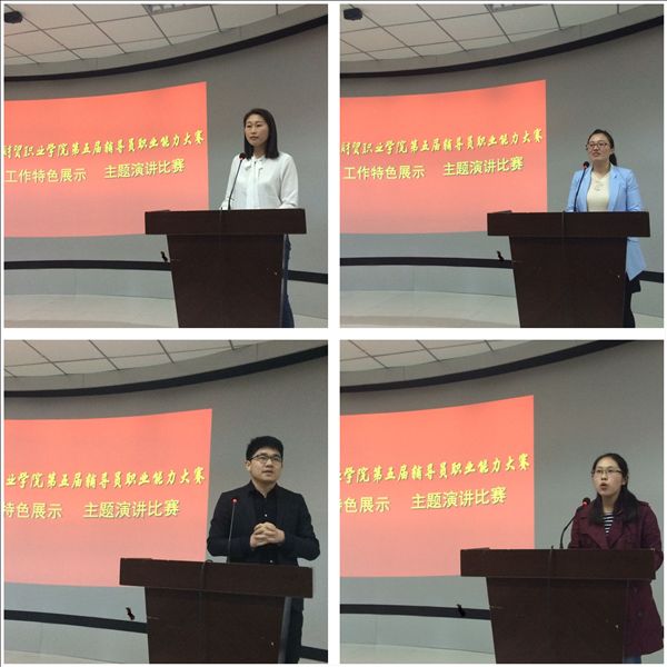 学院第五届辅导员大赛共举办5各分赛项,除了本场中的作特色展示及主题演讲外,还将在5月份举办公文和网文写作、谈心谈话、案例分析等三个环节的比赛。