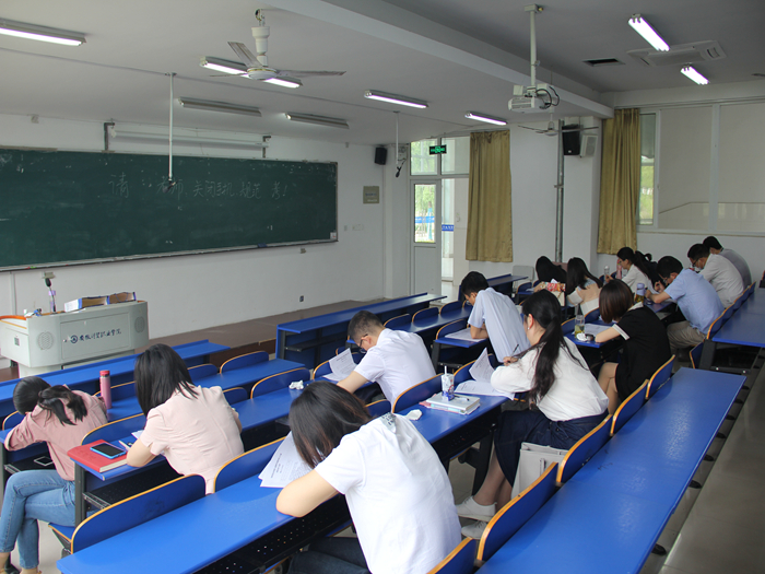 5月30日上午,笔试环节在6101教室进行,基础知识测试、案例分析采用笔试闭卷方式进行。基础知识测试主要考察辅导员对相关知识的掌握程度以及理解分析信息和解决问题的能力,笔试内容涵盖党的十九大精神、习近平关于教育的一系列重要论述、全国高校思想政治工作会议精神,以及《高校思想政治工作质量提升工程实施纲要》《普通高等学校辅导员队伍建设规定》《国家职业教育改革实施方案》《新时代爱国主义教育实施纲要》《普通高等学校辅导员队伍建设规定》《普通高等学校学生管理规定》等辅导员工作领域相关的理论知识和实践能力。案例分析笔试主要考察辅导员分析问题、思考问题、研判问题、解决问题以及理论学习应用能力,参赛辅导员围绕案例中的问题本质、解决思路、实施办法及相关启示进行分析阐述,展示较强的逻辑分析能力和工作应变能力,以及对学生工作的深入思考与实践研究。两场笔试限时120分钟。