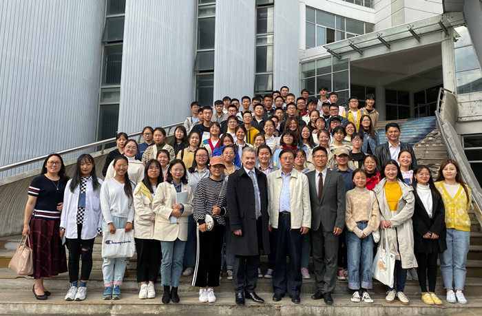 会后,胡戴新陪同来访客人参观了校园,并与项目班新生进行了会面。