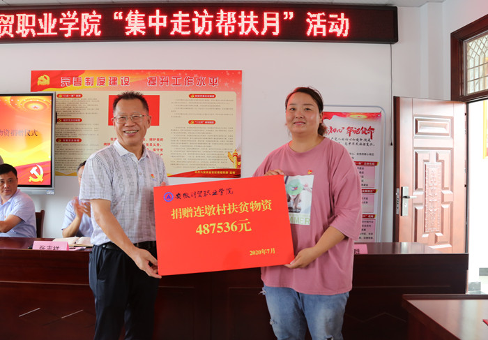 党课宣讲后举行了捐赠仪式,学院投入30万元扶贫资金,用于支持连墩村集体经济产业发展。同时,向连墩村和孙岗镇捐赠价值48万多元的家具、空调等物资,帮助近期因汛情受灾的群众和单位尽快恢复生产生活、开展灾后重建。