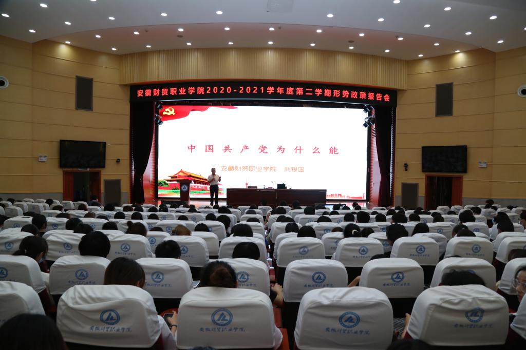 其作始也简,其将毕也必巨。中国共产党一路走来,历经坎坷、饱经风霜,不断带领中国人民书写英勇豪迈的壮丽史诗。为更好的帮助广大学生感知新中国发展变化的伟大成就,把握其中内在的实质,引导学生深刻领悟坚持中国共产党领导的历史必然性,坚定对党的领导的自信。6月24日晚,学校党委副书记、校长刘银国教授在学术报告厅作了题为《中国共产党为什么能》形势政策报告会。财会金融学院、公共教学部共350余名学生代表参加了报告会。