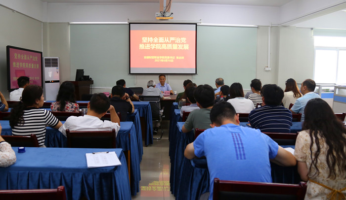 6月16日下午,学校党委书记张志祥在信息工程学院为办公室党支部、信息工程学院党总支全体党员教师讲授《坚持全面从严治党,推进学院高质量发展》专题党课。