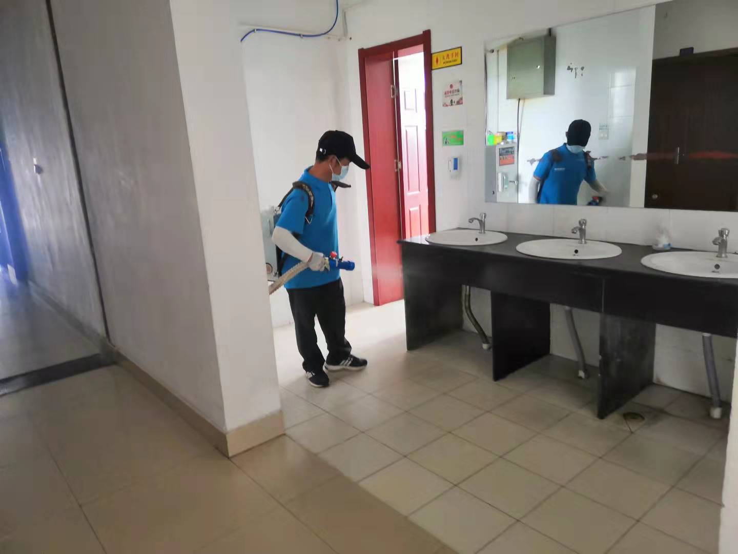 全面开展校园环境消毒消杀工作。9月1日,总务处组织专业消杀公司对校园环境及校内所有场所开展全面消毒消杀活动。消杀人员手持专业设备对校园食堂、通道、垃圾房、草场、教室、公寓等公共区域进行全方位、无缝隙、无死角防疫消毒作业,切实筑好校园防疫墙,为师生们返校全力营造安全健康的校园环境。