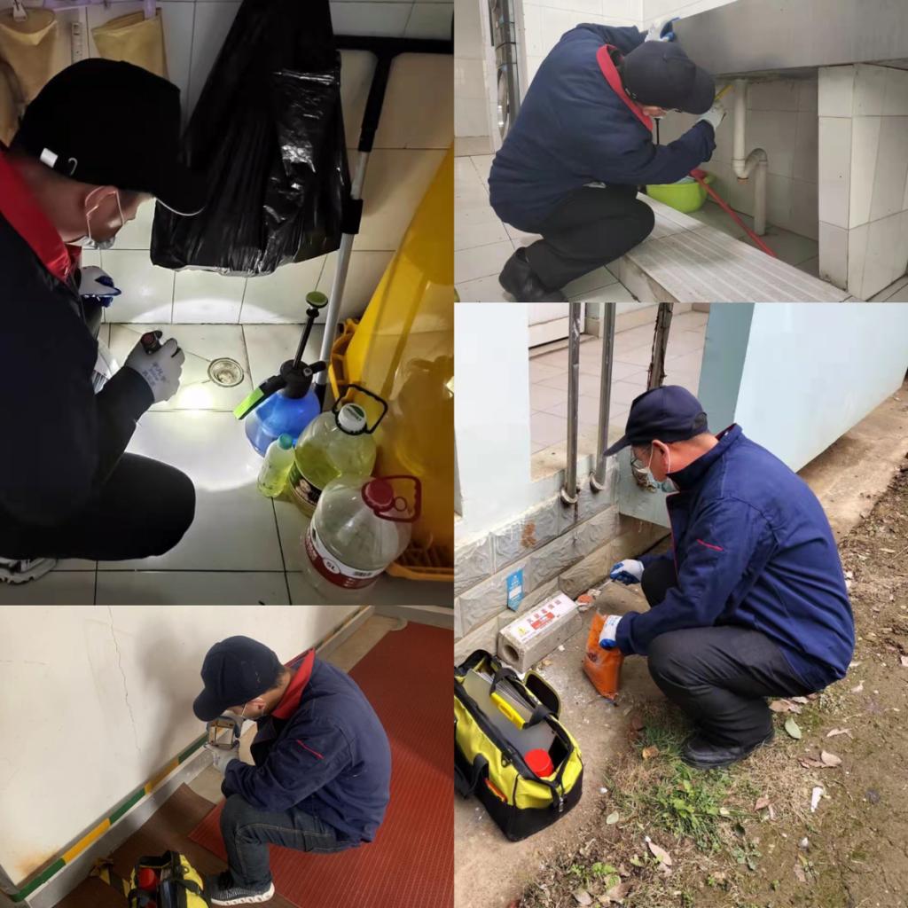 此次消杀主要针对楼宇周边环境及楼内公共大厅、公寓盥洗室、卫生间、走廊、楼梯间、垃圾箱、楼梯扶手等师生接触较多的区域。为确保消杀效果,总务处要求消杀人员和物业保洁员进行全面的卫生清理、消毒、通风,不放过任何死角。消杀工作人员还对校园内所有灭鼠毒饵站进行鼠药更换,灭蝇、灭蚊笼投放诱饵,线桥缝隙死角处投放灭蟑诱剂等降低校园内病媒生物密度。